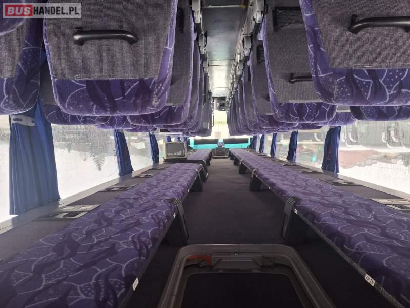 : WC, lodówka, caffebar, kabina sypialna, fotele odchylane, oświetlenie indywidualne, ABS, ASR, retarder, CD, podnóżki, mikrofon, klimatyzacja, radio, regulacja wysokości nadwozia, centralny zamek, podwójne szyby boczne, elektryczne lusterka, aluminiowe felgi, fotele odchylane i rozsuwane, DVD, ogrzewanie stacjonarne, ESP