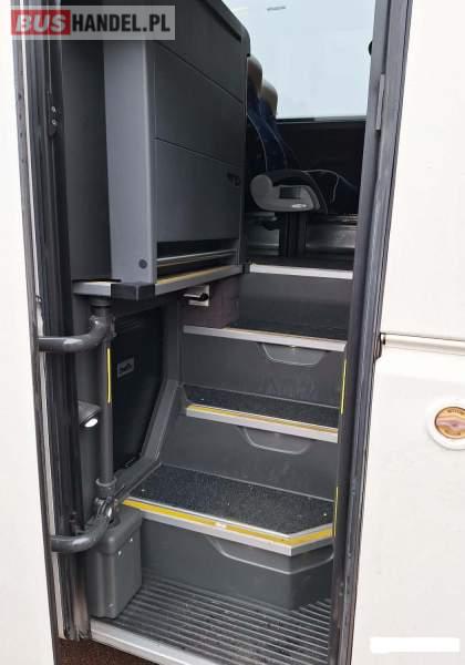 : WC, lodówka, kabina sypialna, oświetlenie indywidualne, nawiewy dyszowe, siateczki, ABS, ASR, tempomat, retarder, nawigacja, CD, podnóżki, stoliczki, mikrofon, klimatyzacja, radio, sejf, regulacja wysokości nadwozia, centralny zamek, podwójne szyby boczne, wspomaganie kierownicy, elektryczne lusterka, fotele odchylane i rozsuwane, DVD, ogrzewanie stacjonarne, hak holowniczy