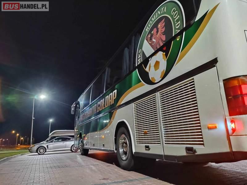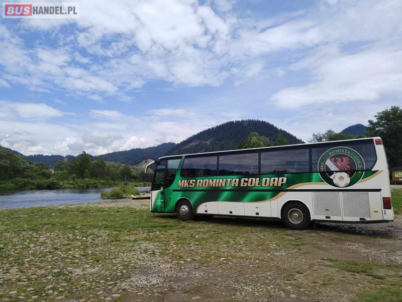 : lodówka, caffebar, fotele odchylane, oświetlenie indywidualne, nawiewy dyszowe, siateczki, ABS, ASR, tempomat, retarder, podnóżki, stoliczki, mikrofon, klimatyzacja, radio, regulacja wysokości nadwozia, centralny zamek, podwójne szyby boczne, wspomaganie kierownicy, elektryczne lusterka, fotele odchylane i rozsuwane, ogrzewanie stacjonarne