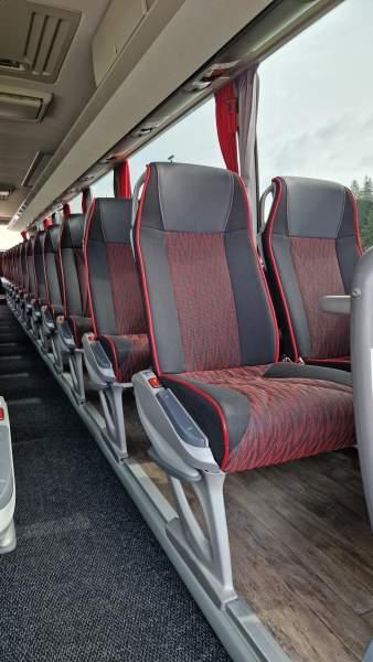 : video, WC, lodówka, caffebar, kabina sypialna, fotele odchylane, oświetlenie indywidualne, nawiewy dyszowe, siateczki, ABS, ASR, tempomat, retarder, telefon, nawigacja, CD, podnóżki, stoliczki, mikrofon, klimatyzacja, radio, regulacja wysokości nadwozia, centralny zamek, podwójne szyby boczne, wspomaganie kierownicy, elektryczne lusterka, fotele odchylane i rozsuwane, DVD, ogrzewanie stacjonarne, hak holowniczy, ESP