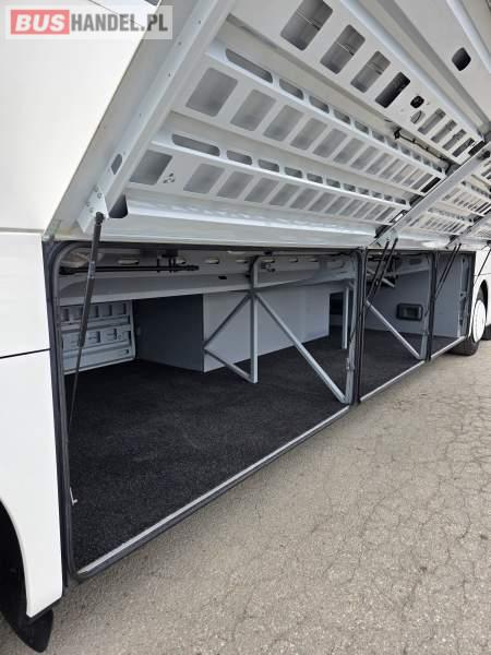 : WC, lodówka, fotele odchylane, oświetlenie indywidualne, nawiewy dyszowe, siateczki, ABS, ASR, tempomat, retarder, podnóżki, stoliczki, mikrofon, klimatyzacja, radio, sejf, regulacja wysokości nadwozia, centralny zamek, podwójne szyby boczne, wspomaganie kierownicy, elektryczne lusterka, fotele odchylane i rozsuwane, DVD, ogrzewanie stacjonarne, ESP