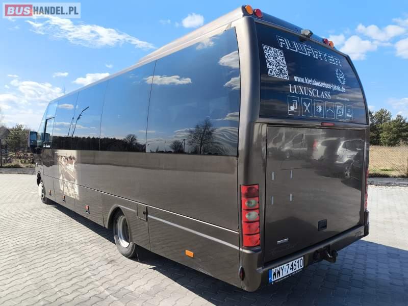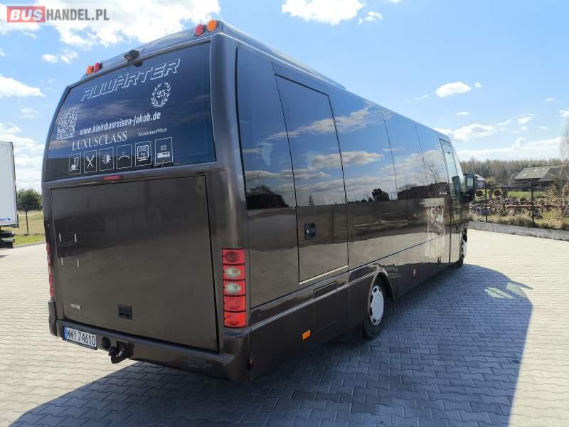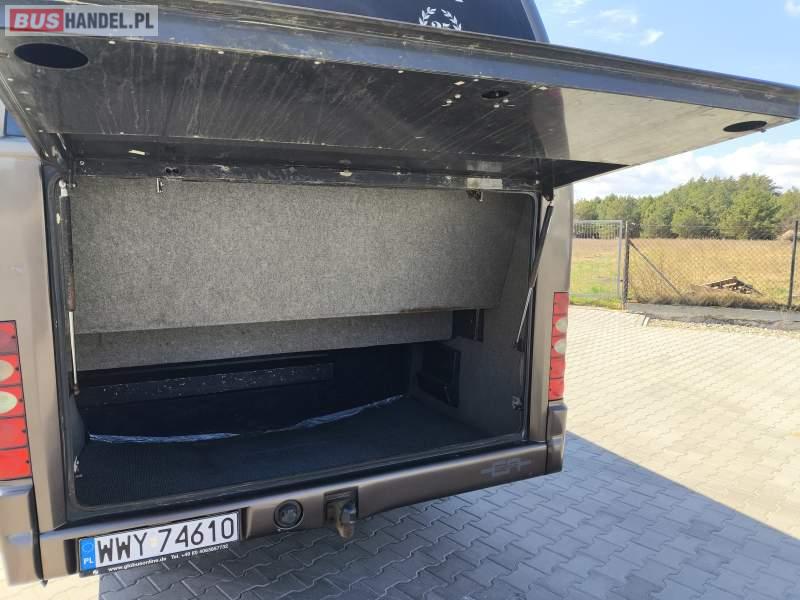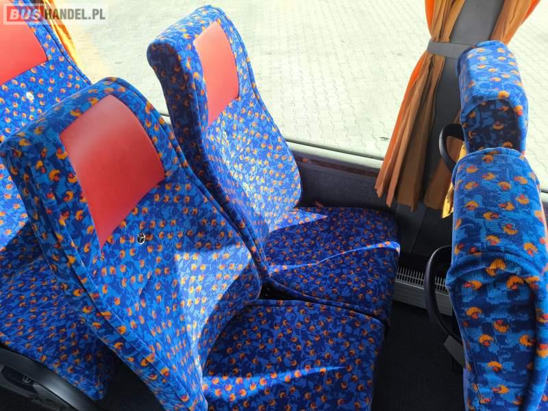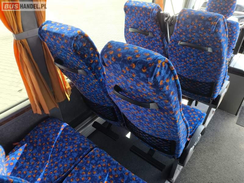 : lodówka, oświetlenie indywidualne, nawiewy dyszowe, siateczki, ABS, ASR, tempomat, retarder, podnóżki, stoliczki, mikrofon, klimatyzacja, radio, podwójne szyby boczne, wspomaganie kierownicy, elektryczne lusterka, fotele odchylane i rozsuwane, ogrzewanie stacjonarne, hak holowniczy