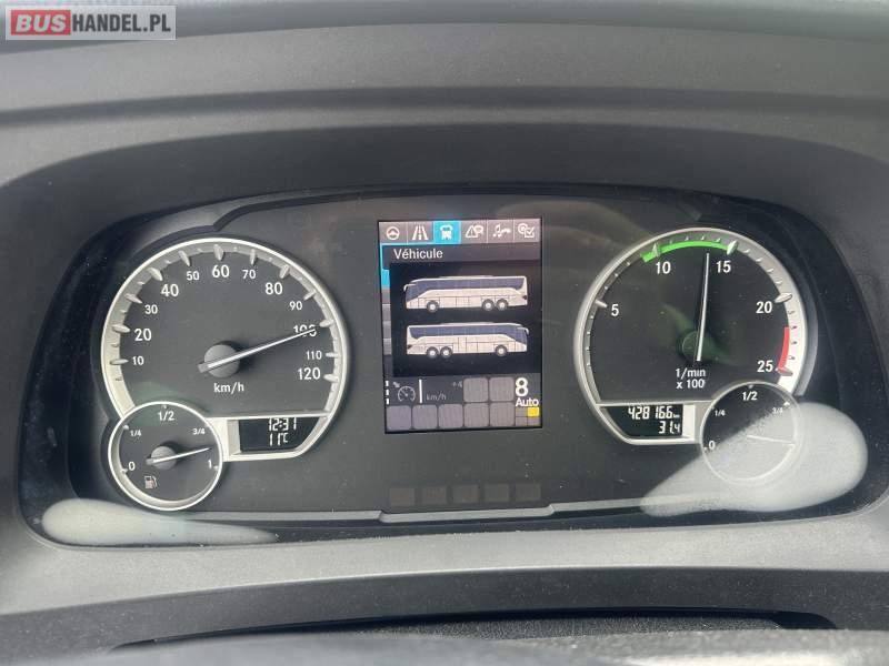 : lodówka, oświetlenie indywidualne, ABS, ASR, retarder, telefon, nawigacja, CD, mikrofon, klimatyzacja, radio, podwójne szyby boczne, wspomaganie kierownicy, aluminiowe felgi, fotele odchylane i rozsuwane, DVD, ogrzewanie stacjonarne, ESP