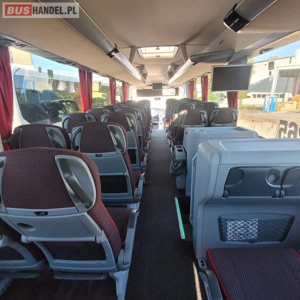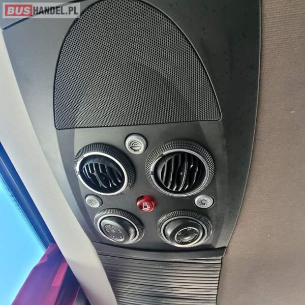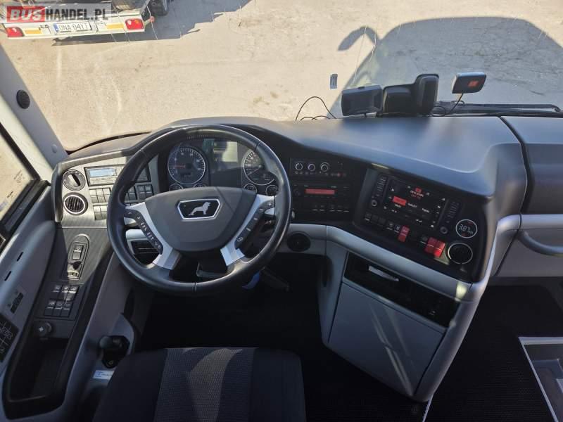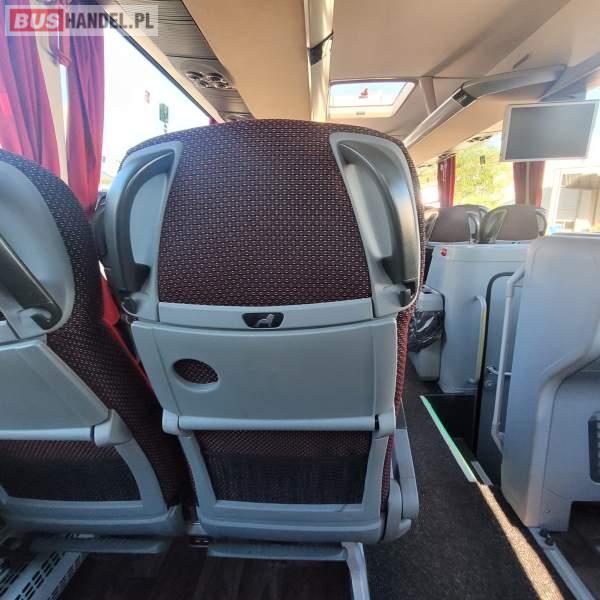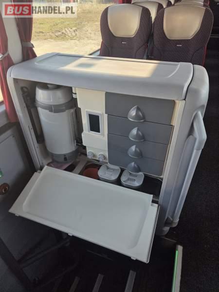 : WC, lodówka, kabina sypialna, nawiewy dyszowe, siateczki, ABS, ASR, tempomat, retarder, podnóżki, stoliczki, mikrofon, klimatyzacja, radio, sejf, regulacja wysokości nadwozia, centralny zamek, podwójne szyby boczne, wspomaganie kierownicy, fotele odchylane i rozsuwane, DVD, ESP