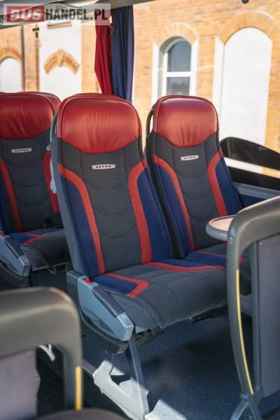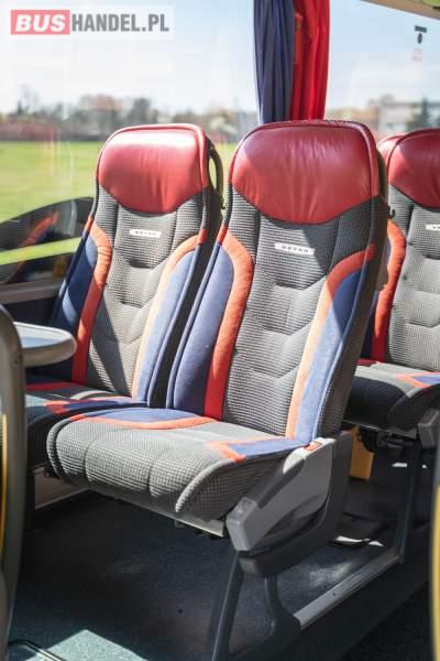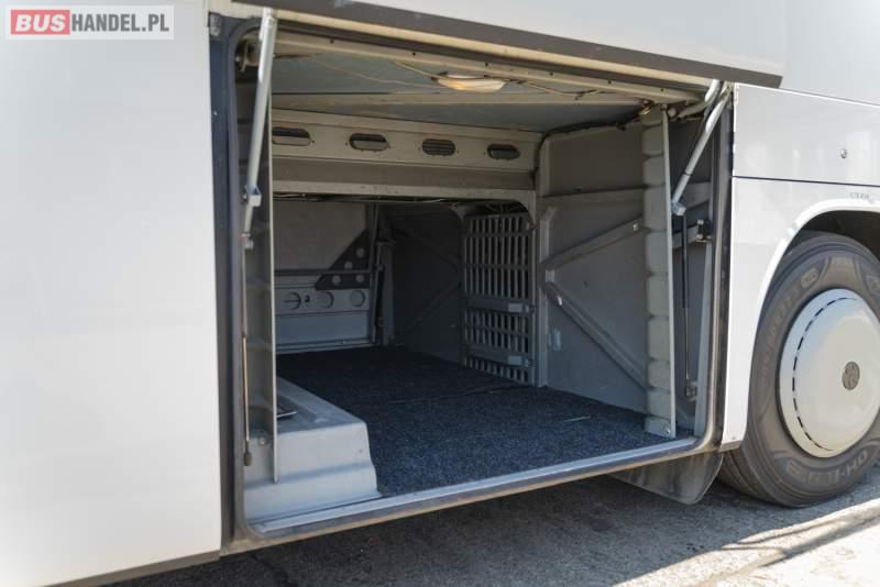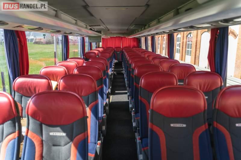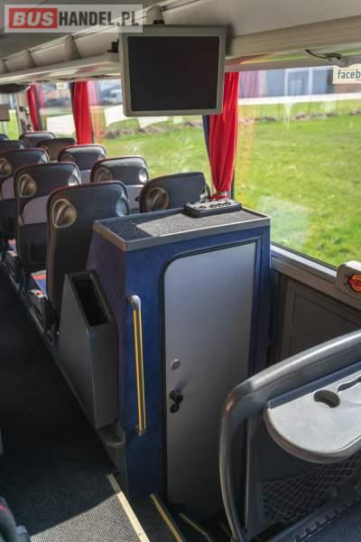 : video, WC, lodówka, caffebar, kabina sypialna, fotele odchylane, nawiewy dyszowe, siateczki, ABS, tempomat, retarder, CD, podnóżki, stoliczki, mikrofon, klimatyzacja, radio, regulacja wysokości nadwozia, wspomaganie kierownicy, fotele odchylane i rozsuwane, DVD