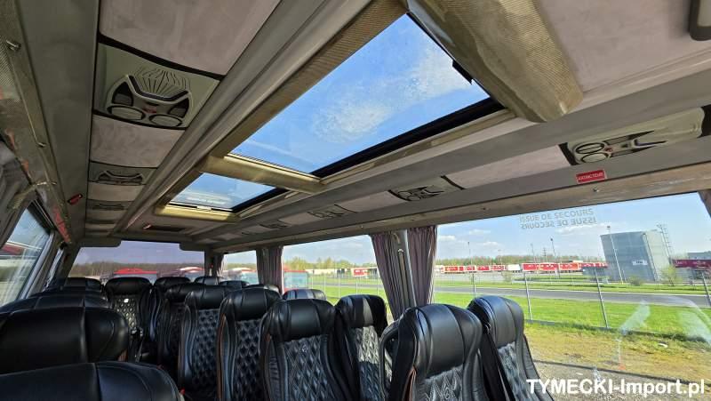 : video, lodówka, fotele odchylane, oświetlenie indywidualne, nawiewy dyszowe, siateczki, ABS, ASR, tempomat, retarder, nawigacja, CD, podnóżki, stoliczki, mikrofon, klimatyzacja, radio, regulacja wysokości nadwozia, centralny zamek, podwójne szyby boczne, wspomaganie kierownicy, elektryczne lusterka, DVD, ogrzewanie stacjonarne, ESP