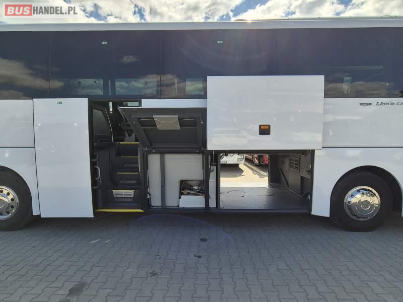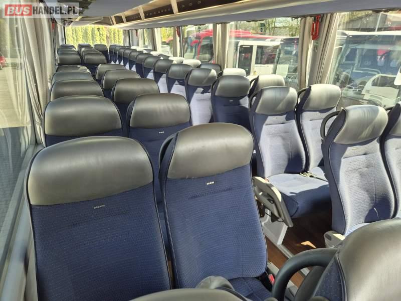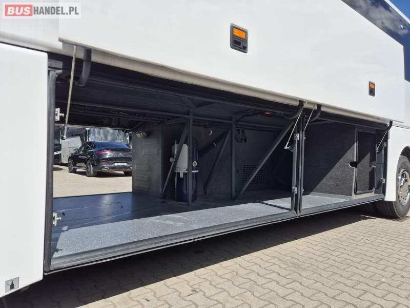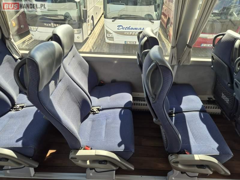 : video, WC, lodówka, fotele odchylane, oświetlenie indywidualne, nawiewy dyszowe, siateczki, ABS, tempomat, retarder, podnóżki, mikrofon, klimatyzacja, radio, regulacja wysokości nadwozia, centralny zamek, podwójne szyby boczne, wspomaganie kierownicy, elektryczne lusterka, DVD, ogrzewanie stacjonarne