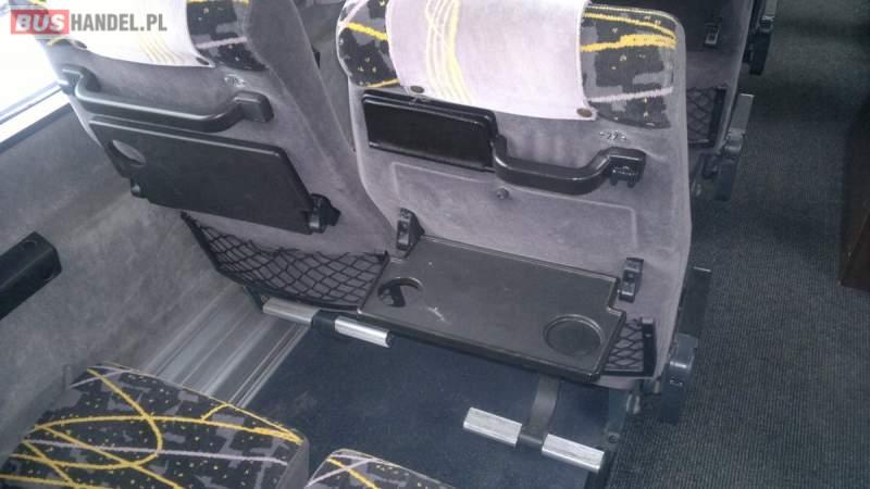 : video, WC, lodówka, caffebar, kabina sypialna, fotele odchylane, oświetlenie indywidualne, nawiewy dyszowe, siateczki, ABS, ASR, tempomat, retarder, telefon, nawigacja, CD, podnóżki, stoliczki, mikrofon, klimatyzacja, radio, regulacja wysokości nadwozia, podwójne szyby boczne, wspomaganie kierownicy, elektryczne lusterka, fotele odchylane i rozsuwane, DVD, ogrzewanie stacjonarne, hak holowniczy
