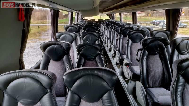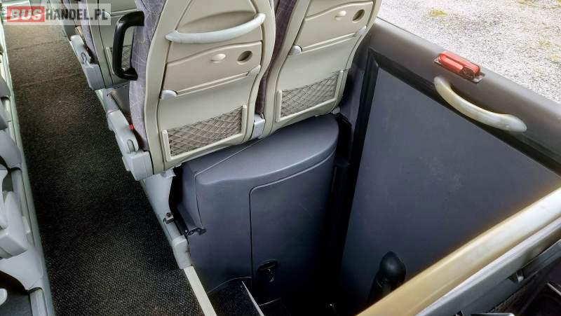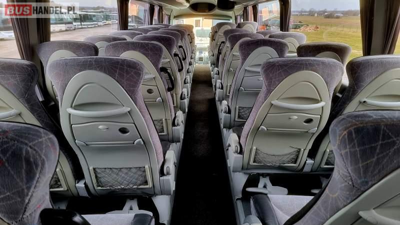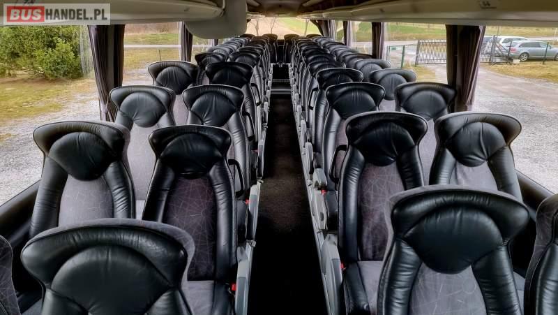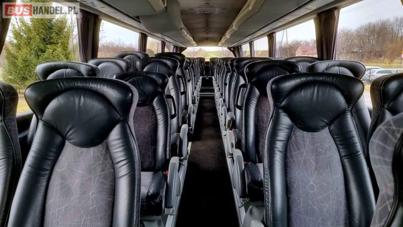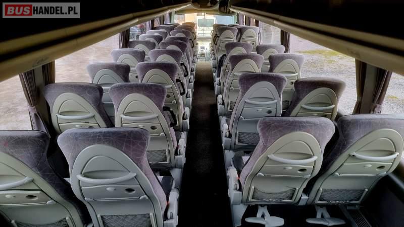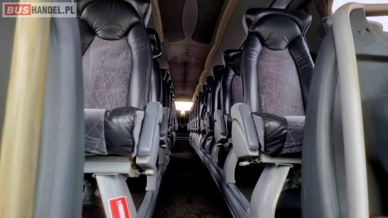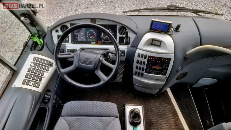 : video, WC, lodówka, kabina sypialna, oświetlenie indywidualne, nawiewy dyszowe, siateczki, ABS, ASR, tempomat, retarder, nawigacja, CD, podnóżki, stoliczki, mikrofon, klimatyzacja, radio, regulacja wysokości nadwozia, centralny zamek, podwójne szyby boczne, wspomaganie kierownicy, elektryczne lusterka, fotele odchylane i rozsuwane, DVD, ogrzewanie stacjonarne