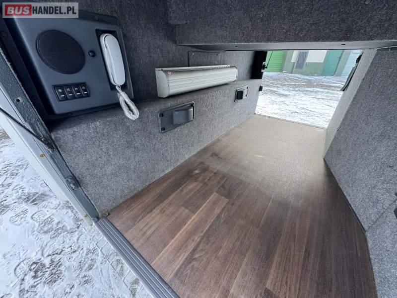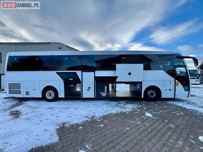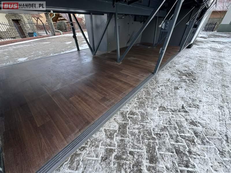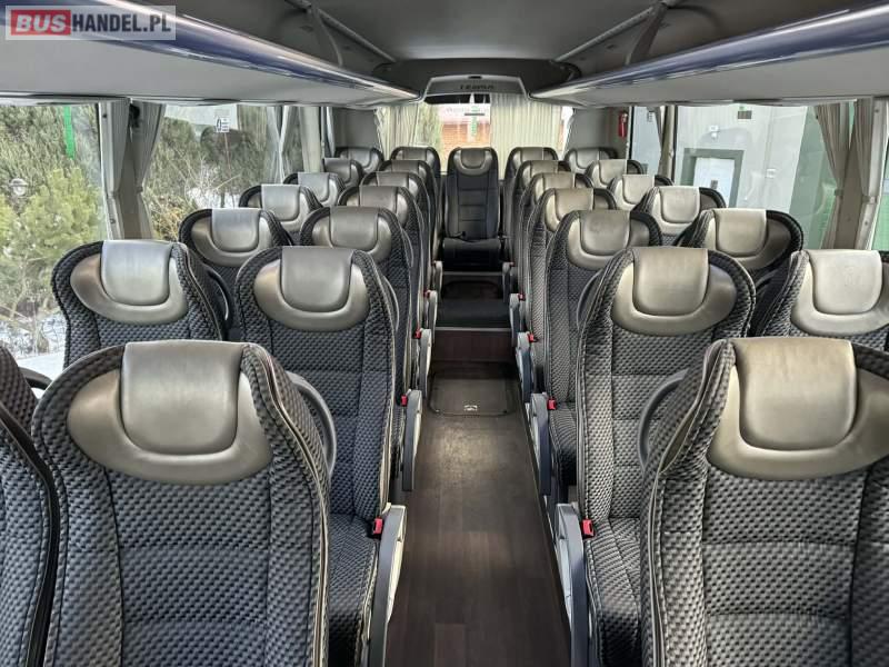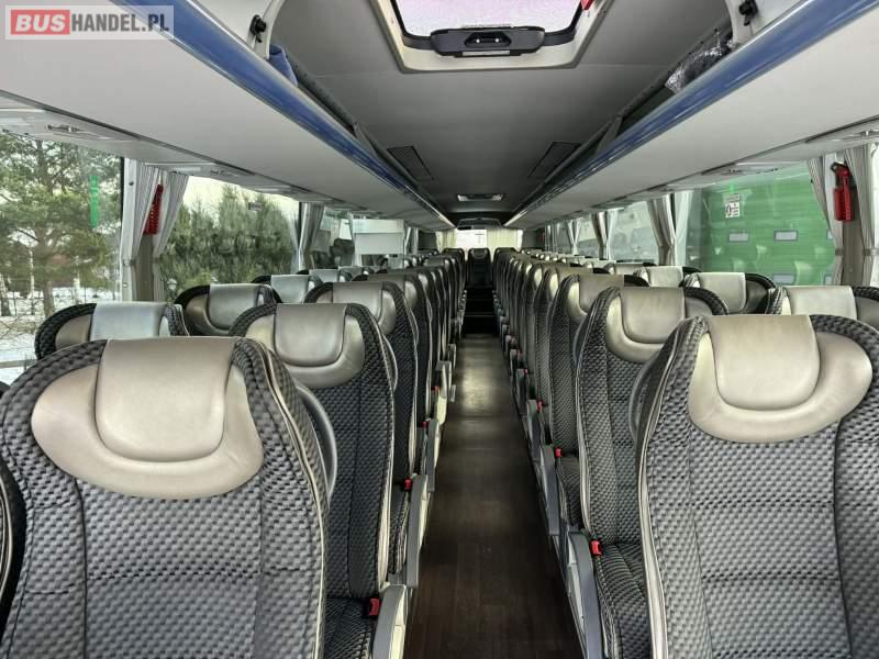 : video, WC, lodówka, caffebar, kabina sypialna, oświetlenie indywidualne, nawiewy dyszowe, siateczki, ABS, ASR, tempomat, retarder, telefon, nawigacja, CD, podnóżki, stoliczki, mikrofon, klimatyzacja, radio, regulacja wysokości nadwozia, centralny zamek, podwójne szyby boczne, wspomaganie kierownicy, elektryczne lusterka, fotele odchylane i rozsuwane, DVD, ogrzewanie stacjonarne, ESP