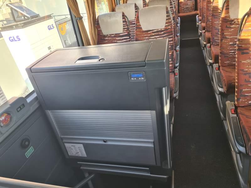 : WC, lodówka, caffebar, kabina sypialna, oświetlenie indywidualne, ABS, ASR, tempomat, retarder, CD, podnóżki, stoliczki, mikrofon, klimatyzacja, radio, regulacja wysokości nadwozia, centralny zamek, podwójne szyby boczne, elektryczne lusterka, aluminiowe felgi, fotele odchylane i rozsuwane, DVD, ESP