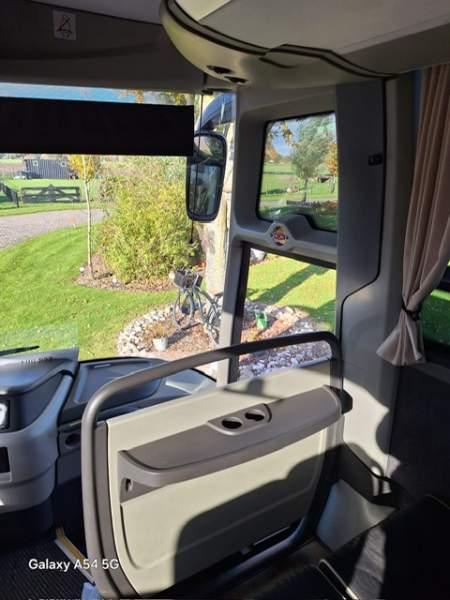 : WC, lodówka, caffebar, oświetlenie indywidualne, nawiewy dyszowe, siateczki, ABS, ASR, tempomat, retarder, nawigacja, CD, podnóżki, stoliczki, mikrofon, klimatyzacja, radio, regulacja wysokości nadwozia, centralny zamek, podwójne szyby boczne, wspomaganie kierownicy, elektryczne lusterka, fotele odchylane i rozsuwane, DVD, ogrzewanie stacjonarne