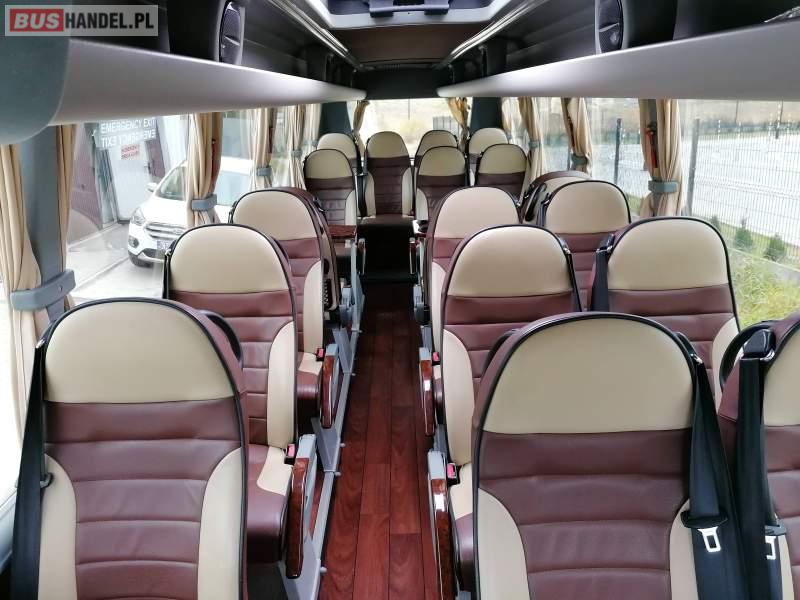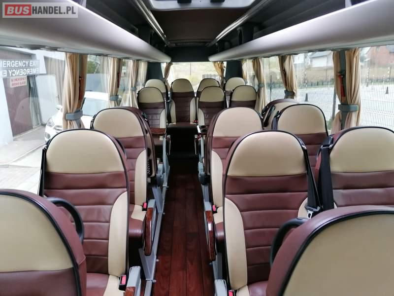 : video, lodówka, fotele odchylane, oświetlenie indywidualne, nawiewy dyszowe, siateczki, ABS, ASR, tempomat, retarder, CD, podnóżki, stoliczki, mikrofon, klimatyzacja, radio, centralny zamek, podwójne szyby boczne, wspomaganie kierownicy, elektryczne lusterka, fotele odchylane i rozsuwane, DVD, ogrzewanie stacjonarne, hak holowniczy, ESP