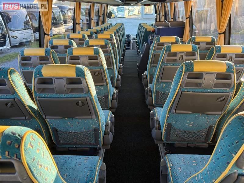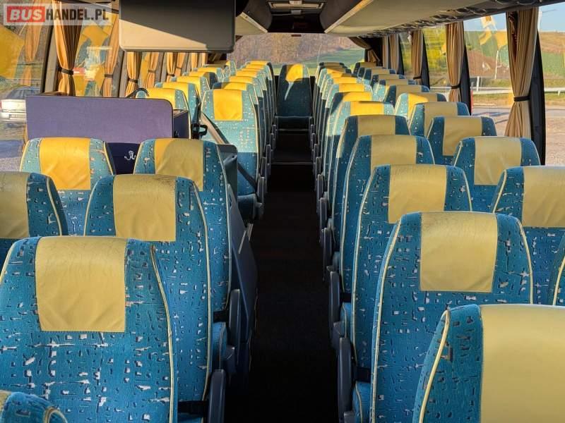 : video, WC, lodówka, caffebar, kabina sypialna, oświetlenie indywidualne, nawiewy dyszowe, siateczki, ABS, ASR, tempomat, retarder, CD, podnóżki, stoliczki, mikrofon, klimatyzacja, radio, regulacja wysokości nadwozia, centralny zamek, podwójne szyby boczne, wspomaganie kierownicy, elektryczne lusterka, fotele odchylane i rozsuwane, DVD, ogrzewanie stacjonarne, ESP