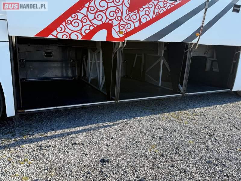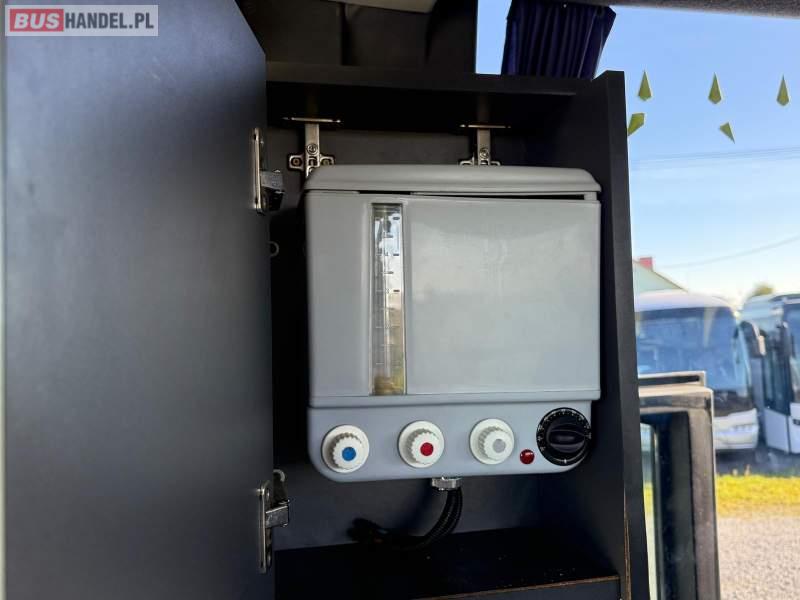 : video, lodówka, caffebar, fotele odchylane, oświetlenie indywidualne, nawiewy dyszowe, ABS, ASR, tempomat, retarder, CD, mikrofon, klimatyzacja, radio, regulacja wysokości nadwozia, centralny zamek, podwójne szyby boczne, wspomaganie kierownicy, elektryczne lusterka, DVD, ogrzewanie stacjonarne