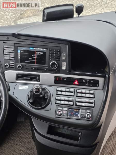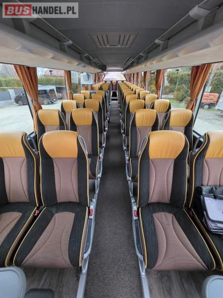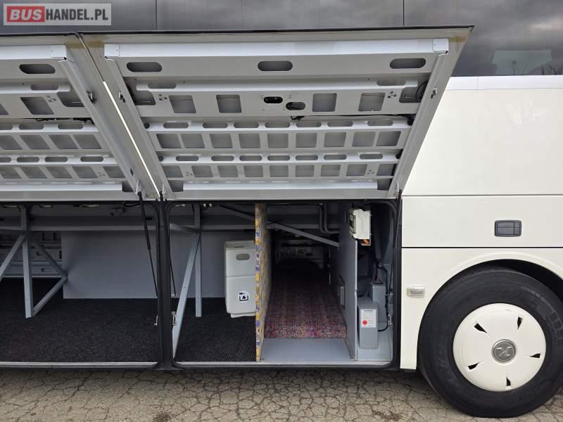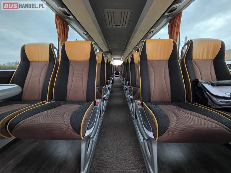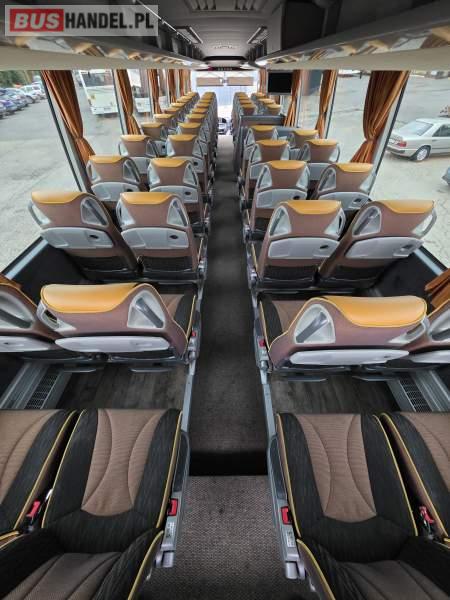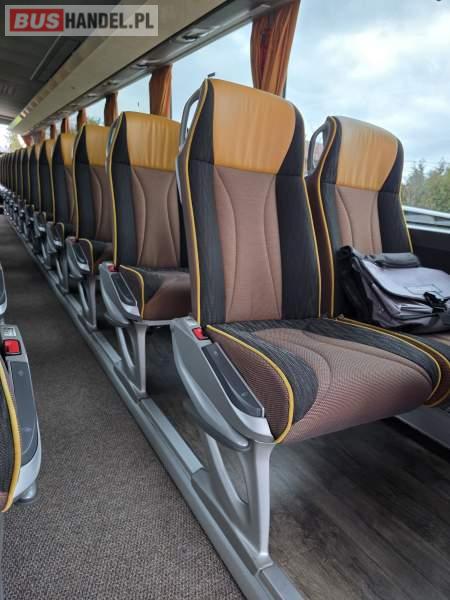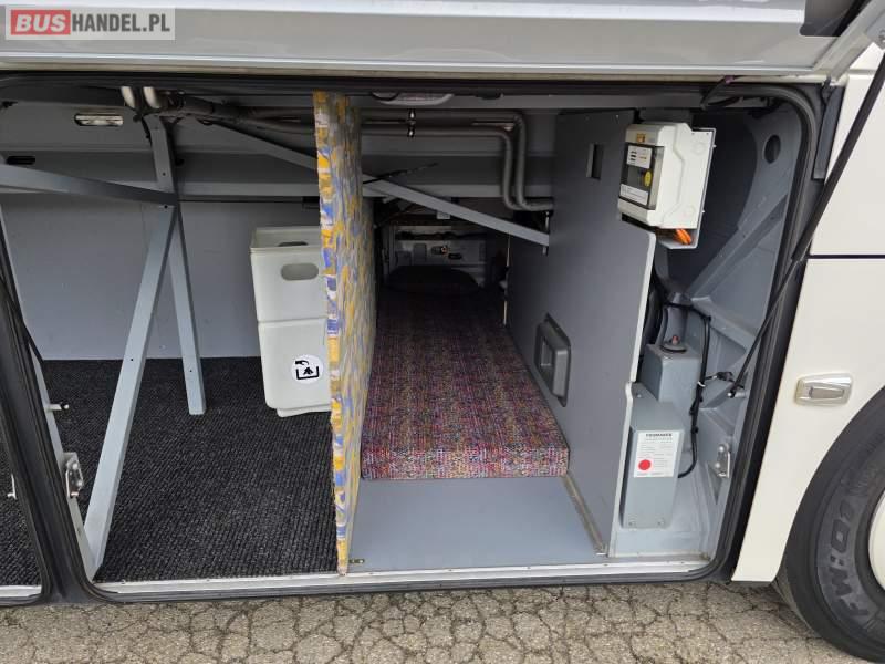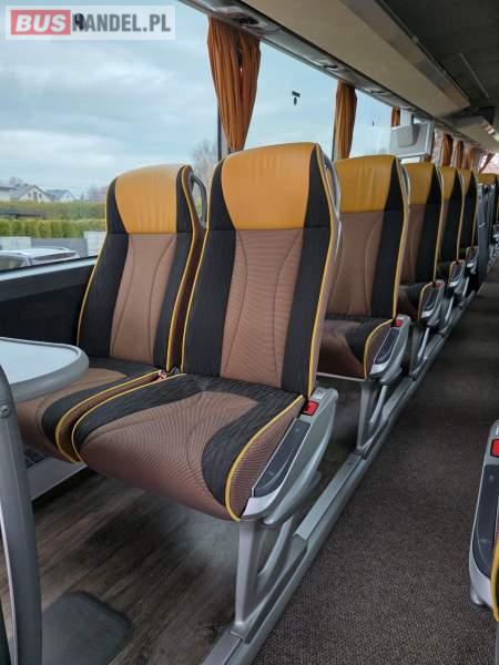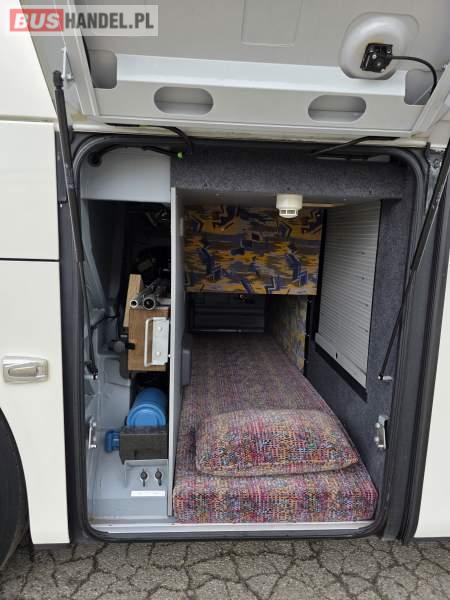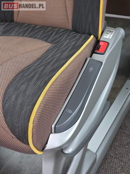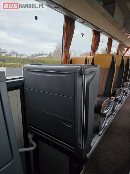: klimatyzacja, WC, lodówka, caffebar, oświetlenie indywidualne, nawiewy dyszowe, podnóżki, stoliczki, siateczki, ABS, ASR, tempomat, retarder, mikrofon, radio, fotele odchylane i rozsuwane, sejf, regulacja wysokości nadwozia, centralny zamek, podwójne szyby boczne, wspomaganie kierownicy, elektryczne lusterka, ogrzewanie stacjonarne, DVD, ESP