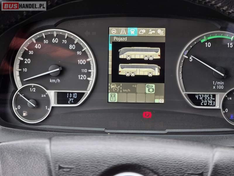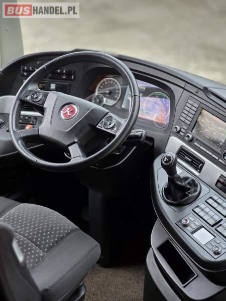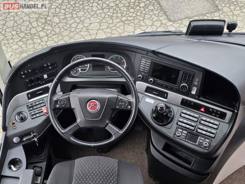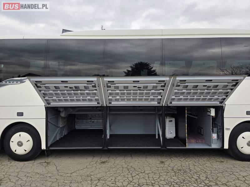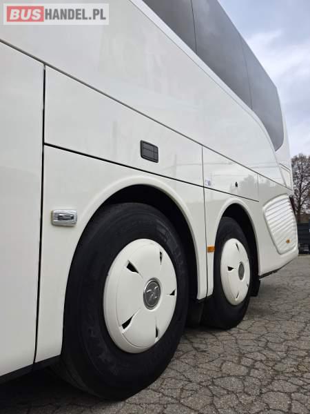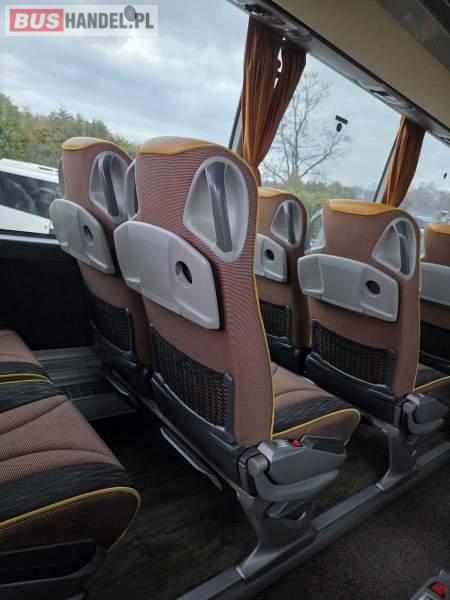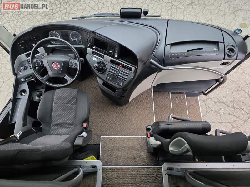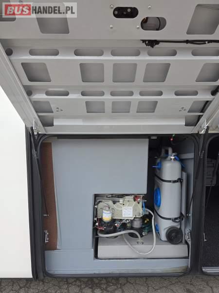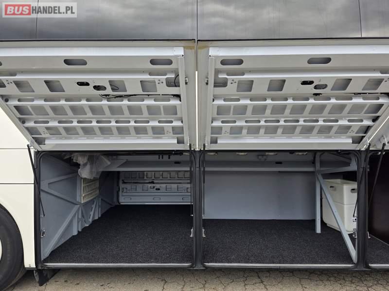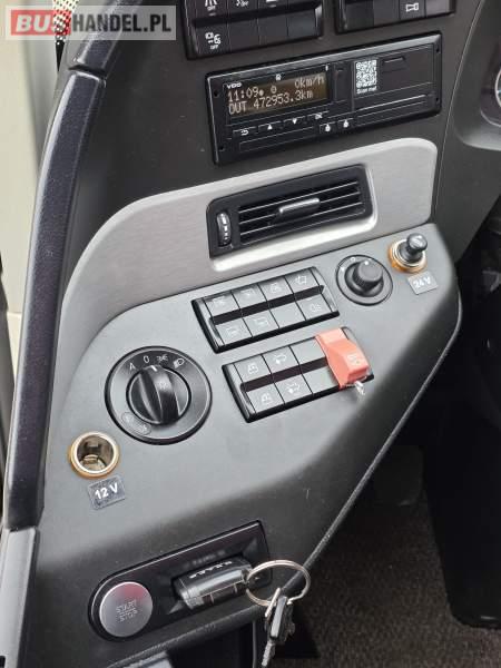 : klimatyzacja, WC, lodówka, caffebar, oświetlenie indywidualne, nawiewy dyszowe, podnóżki, stoliczki, siateczki, ABS, ASR, tempomat, retarder, mikrofon, radio, fotele odchylane i rozsuwane, sejf, regulacja wysokości nadwozia, centralny zamek, podwójne szyby boczne, wspomaganie kierownicy, elektryczne lusterka, ogrzewanie stacjonarne, DVD, ESP