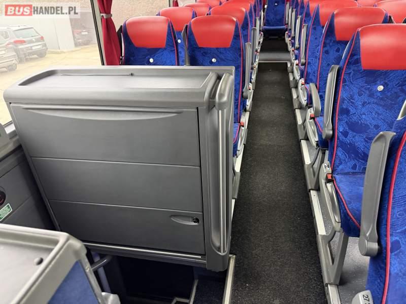 : WC, lodówka, oświetlenie indywidualne, nawiewy dyszowe, siateczki, ASR, tempomat, retarder, stoliczki, mikrofon, klimatyzacja, radio, sejf, regulacja wysokości nadwozia, centralny zamek, podwójne szyby boczne, wspomaganie kierownicy, elektryczne lusterka, fotele odchylane i rozsuwane, DVD, ogrzewanie stacjonarne