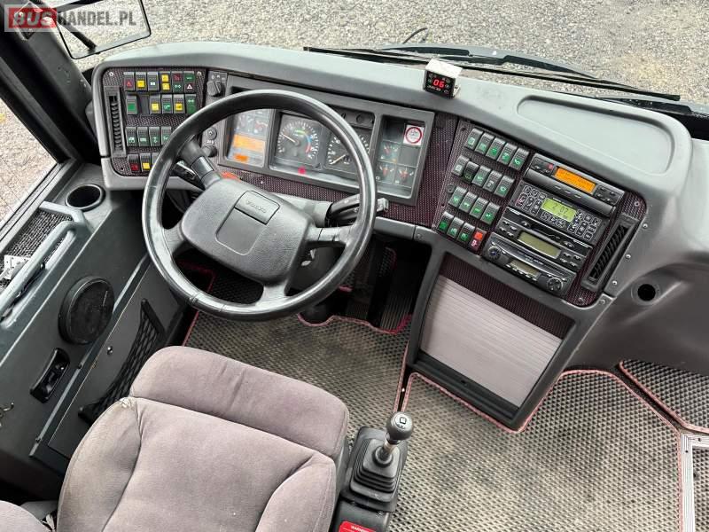 : video, WC, lodówka, caffebar, kabina sypialna, oświetlenie indywidualne, nawiewy dyszowe, siateczki, ABS, ASR, tempomat, retarder, CD, podnóżki, stoliczki, mikrofon, klimatyzacja, radio, wyświetlacz matrix, regulacja wysokości nadwozia, centralny zamek, podwójne szyby boczne, wspomaganie kierownicy, elektryczne lusterka, fotele odchylane i rozsuwane, DVD, ogrzewanie stacjonarne