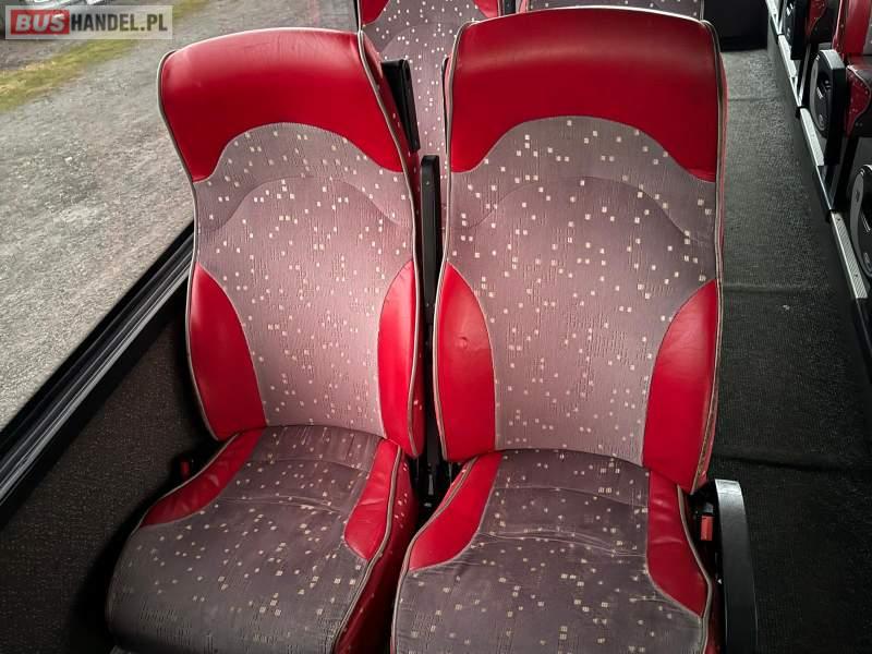 : video, WC, lodówka, caffebar, kabina sypialna, oświetlenie indywidualne, nawiewy dyszowe, siateczki, ABS, ASR, tempomat, retarder, CD, podnóżki, stoliczki, mikrofon, klimatyzacja, radio, wyświetlacz matrix, regulacja wysokości nadwozia, centralny zamek, podwójne szyby boczne, wspomaganie kierownicy, elektryczne lusterka, fotele odchylane i rozsuwane, DVD, ogrzewanie stacjonarne