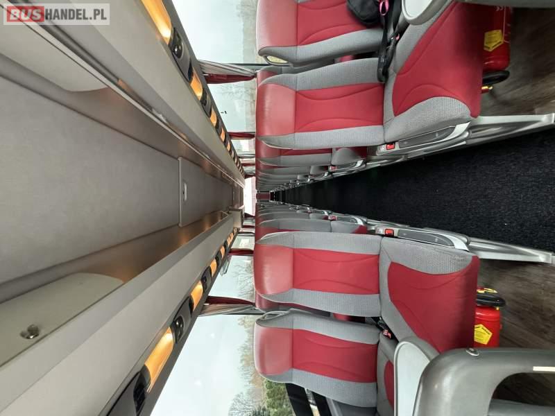 : video, WC, lodówka, caffebar, oświetlenie indywidualne, nawiewy dyszowe, siateczki, ABS, ASR, tempomat, retarder, telefon, nawigacja, CD, podnóżki, stoliczki, mikrofon, klimatyzacja, radio, sejf, regulacja wysokości nadwozia, centralny zamek, podwójne szyby boczne, wspomaganie kierownicy, elektryczne lusterka, aluminiowe felgi, fotele odchylane i rozsuwane, DVD, ogrzewanie stacjonarne, hak holowniczy, ESP