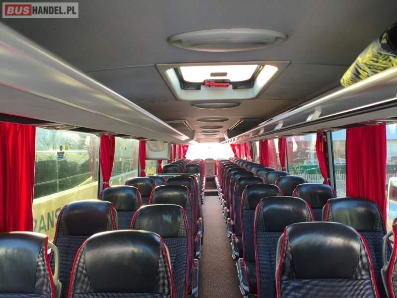 : klimatyzacja, video, WC, lodówka, caffebar, kabina sypialna, oświetlenie indywidualne, nawiewy dyszowe, fotele nieodchylane, podnóżki, stoliczki, siateczki, ABS, ASR, tempomat, retarder, nawigacja, CD, mikrofon, radio, fotele odchylane i rozsuwane, wyświetlacz matrix, regulacja wysokości nadwozia, centralny zamek, podwójne szyby boczne, wspomaganie kierownicy, DVD, ESP