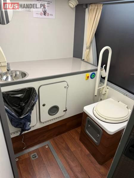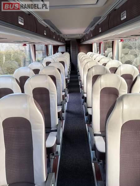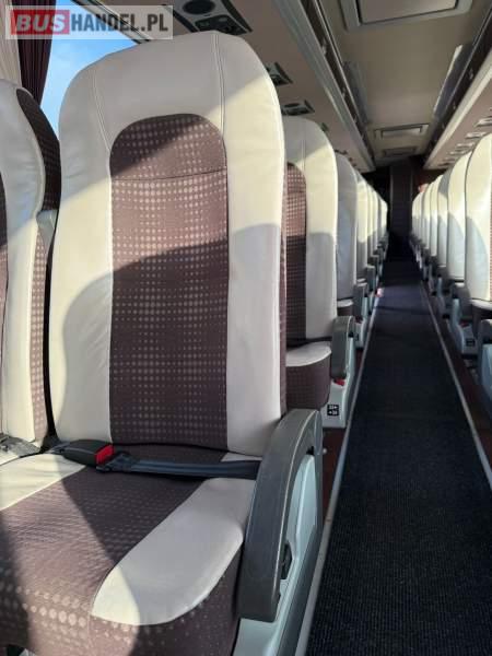 : klimatyzacja, WC, lodówka, kabina sypialna, oświetlenie indywidualne, nawiewy dyszowe, podnóżki, stoliczki, siateczki, ABS, ASR, tempomat, retarder, mikrofon, fotele odchylane i rozsuwane, rampa dla inwalidów, sejf, regulacja wysokości nadwozia, centralny zamek, podwójne szyby boczne, wspomaganie kierownicy, elektryczne lusterka, ogrzewanie stacjonarne, ESP