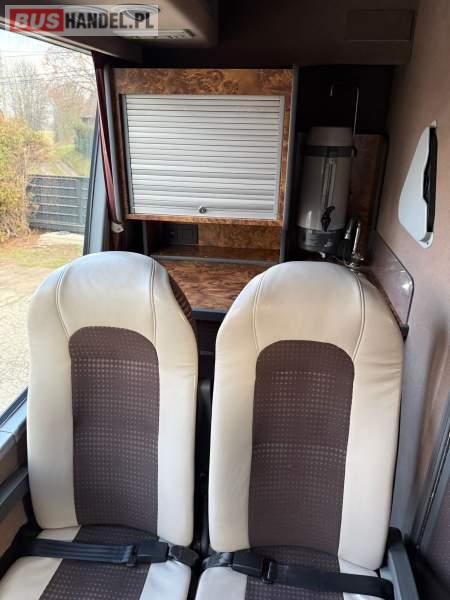 : klimatyzacja, WC, lodówka, kabina sypialna, oświetlenie indywidualne, nawiewy dyszowe, podnóżki, stoliczki, siateczki, ABS, ASR, tempomat, retarder, mikrofon, fotele odchylane i rozsuwane, rampa dla inwalidów, sejf, regulacja wysokości nadwozia, centralny zamek, podwójne szyby boczne, wspomaganie kierownicy, elektryczne lusterka, ogrzewanie stacjonarne, ESP