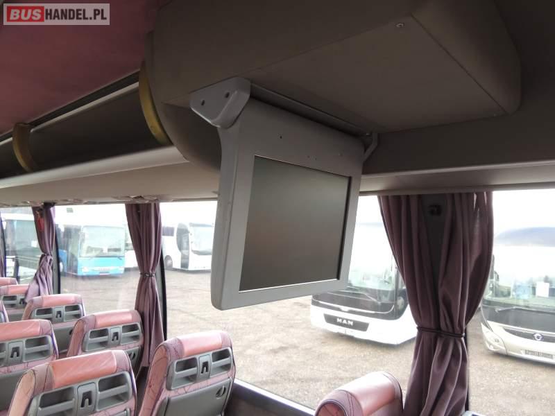 : video, WC, lodówka, caffebar, kabina sypialna, oświetlenie indywidualne, nawiewy dyszowe, siateczki, ABS, ASR, tempomat, retarder, CD, stoliczki, klimatyzacja, radio, regulacja wysokości nadwozia, centralny zamek, podwójne szyby boczne, wspomaganie kierownicy, fotele odchylane i rozsuwane, DVD, ogrzewanie stacjonarne