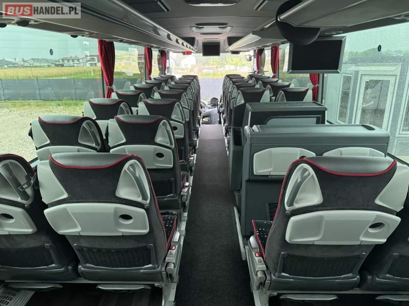 : WC, lodówka, caffebar, kabina sypialna, oświetlenie indywidualne, nawiewy dyszowe, siateczki, ABS, ASR, tempomat, retarder, telefon, CD, podnóżki, stoliczki, mikrofon, klimatyzacja, radio, regulacja wysokości nadwozia, centralny zamek, podwójne szyby boczne, wspomaganie kierownicy, elektryczne lusterka, aluminiowe felgi, fotele odchylane i rozsuwane, DVD, ESP