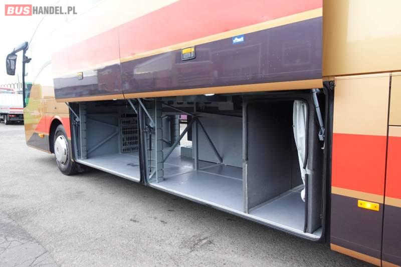 : klimatyzacja, video, WC, lodówka, caffebar, kabina sypialna, oświetlenie indywidualne, nawiewy dyszowe, fotele odchylane, podnóżki, stoliczki, siateczki, ABS, ASR, tempomat, retarder, CD, mikrofon, radio, fotele odchylane i rozsuwane, wyświetlacz matrix, regulacja wysokości nadwozia, centralny zamek, podwójne szyby boczne, wspomaganie kierownicy, elektryczne lusterka, ogrzewanie stacjonarne, DVD, hak holowniczy, ESP