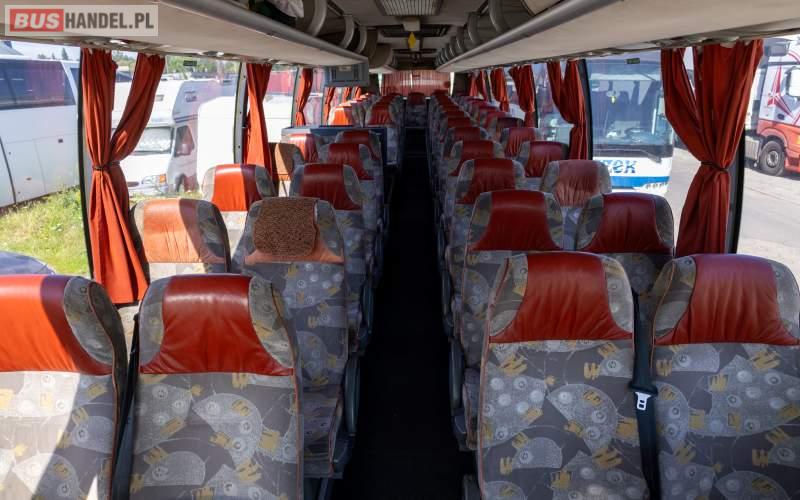 : video, WC, lodówka, caffebar, kabina sypialna, fotele odchylane, oświetlenie indywidualne, nawiewy dyszowe, siateczki, ABS, tempomat, retarder, CD, podnóżki, stoliczki, mikrofon, klimatyzacja, radio, regulacja wysokości nadwozia, podwójne szyby boczne, elektryczne lusterka, DVD, ogrzewanie stacjonarne