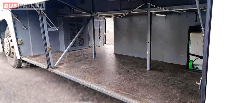 : video, WC, lodówka, caffebar, kabina sypialna, siateczki, ABS, ASR, tempomat, retarder, CD, stoliczki, mikrofon, klimatyzacja, radio, elektryczne lusterka, aluminiowe felgi, fotele odchylane i rozsuwane, DVD, ogrzewanie stacjonarne, ESP