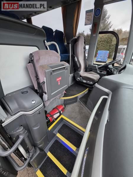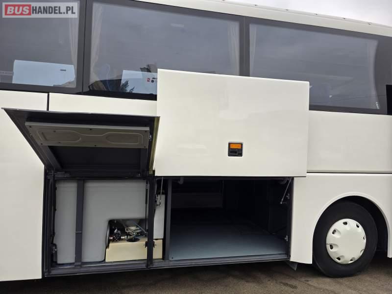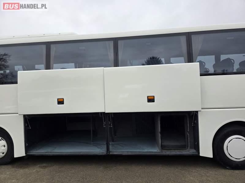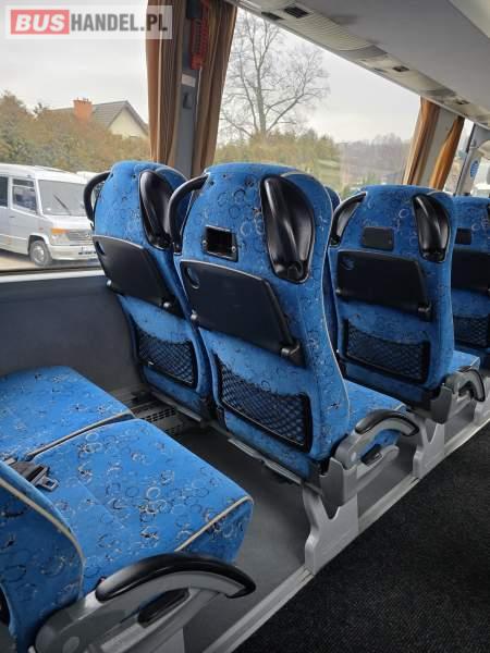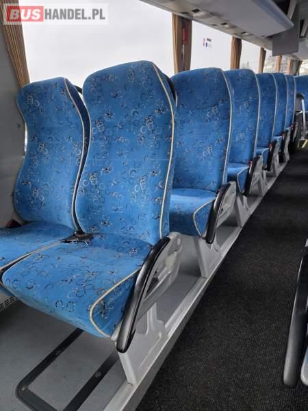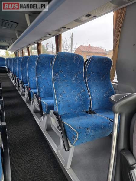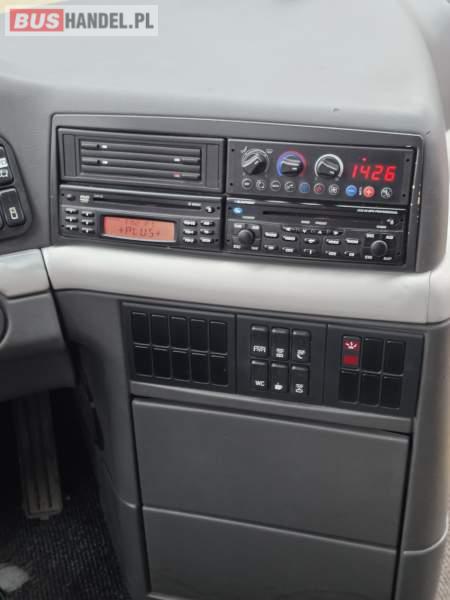 : WC, lodówka, kabina sypialna, fotele odchylane, oświetlenie indywidualne, nawiewy dyszowe, siateczki, ABS, ASR, tempomat, retarder, podnóżki, stoliczki, mikrofon, klimatyzacja, radio, regulacja wysokości nadwozia, centralny zamek, podwójne szyby boczne, wspomaganie kierownicy, elektryczne lusterka, DVD, ogrzewanie stacjonarne