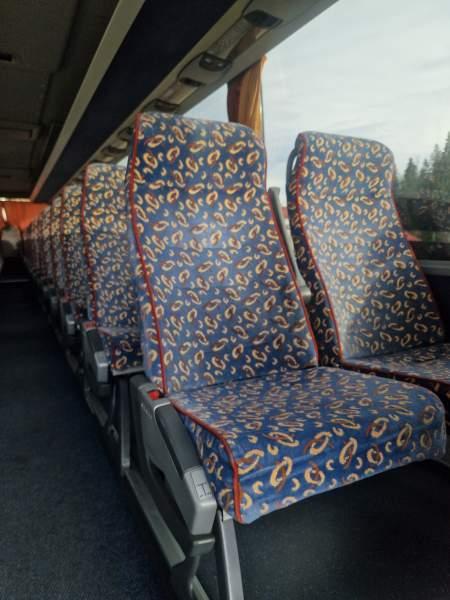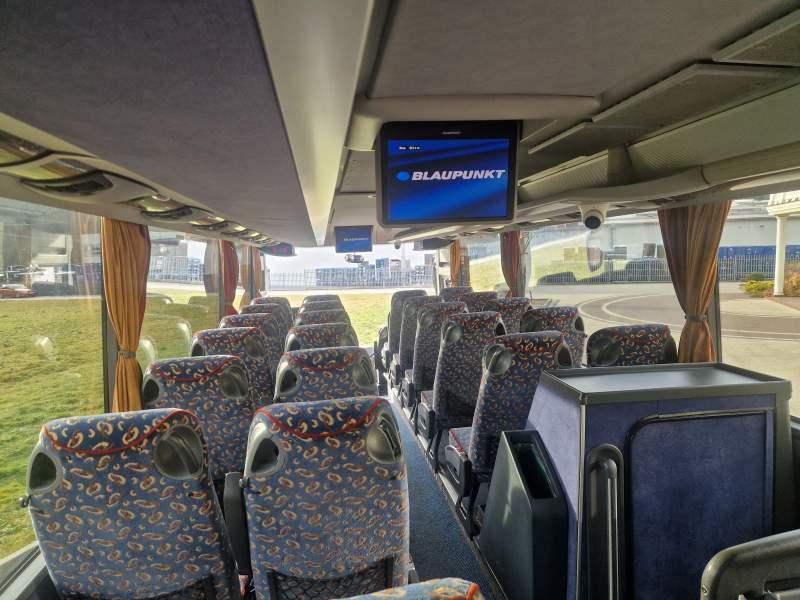 : video, WC, lodówka, kabina sypialna, fotele odchylane, oświetlenie indywidualne, nawiewy dyszowe, siateczki, ABS, ASR, tempomat, retarder, CD, podnóżki, mikrofon, klimatyzacja, radio, regulacja wysokości nadwozia, podwójne szyby boczne, wspomaganie kierownicy, elektryczne lusterka, aluminiowe felgi, fotele odchylane i rozsuwane, DVD, ogrzewanie stacjonarne, ESP