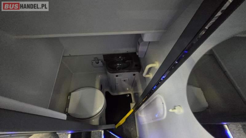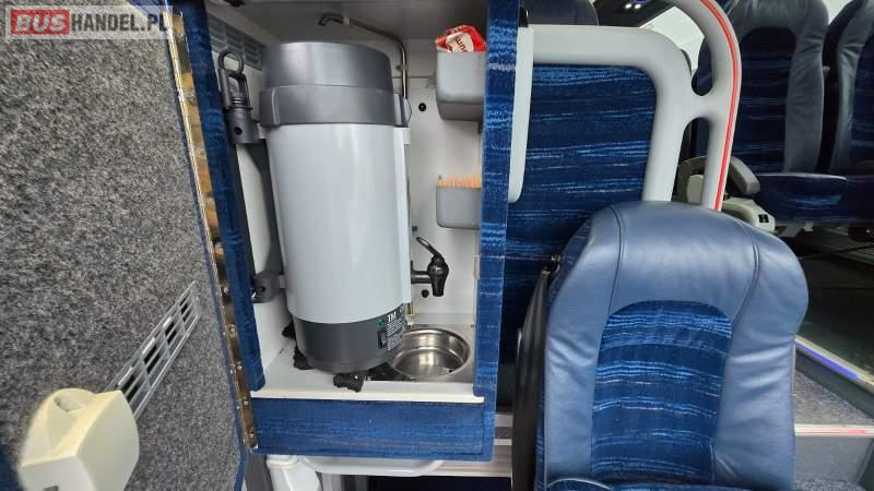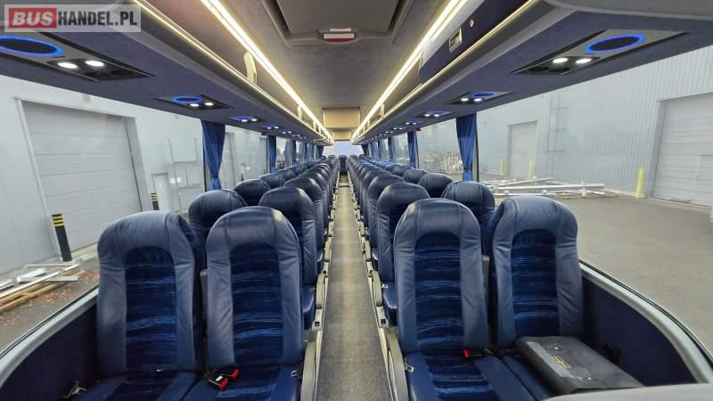: klimatyzacja, WC, lodówka, caffebar, kabina sypialna, oświetlenie indywidualne, nawiewy dyszowe, podnóżki, stoliczki, siateczki, ABS, ASR, tempomat, retarder, mikrofon, radio, fotele odchylane i rozsuwane, sejf, regulacja wysokości nadwozia, centralny zamek, podwójne szyby boczne, wspomaganie kierownicy, aluminiowe felgi, elektryczne lusterka, ogrzewanie stacjonarne, DVD, ESP