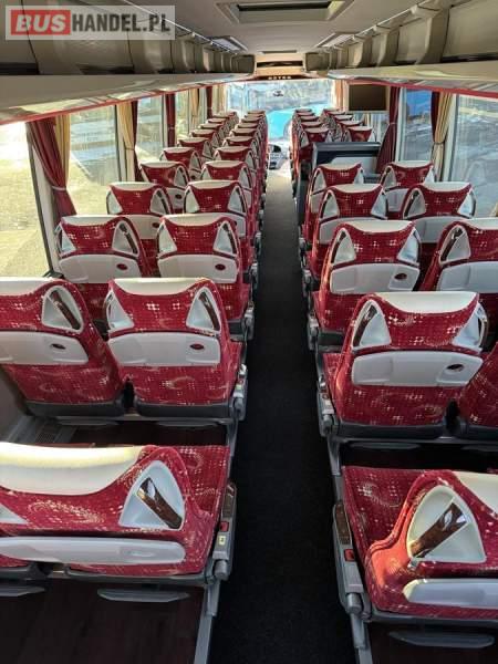 : klimatyzacja, WC, lodówka, caffebar, oświetlenie indywidualne, nawiewy dyszowe, podnóżki, stoliczki, siateczki, ABS, ASR, tempomat, retarder, nawigacja, CD, mikrofon, radio, fotele odchylane i rozsuwane, sejf, regulacja wysokości nadwozia, centralny zamek, podwójne szyby boczne, wspomaganie kierownicy, elektryczne lusterka, ogrzewanie stacjonarne, DVD, ESP