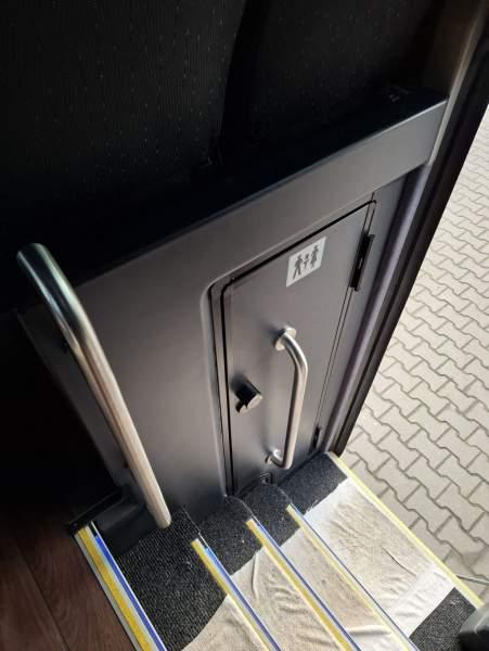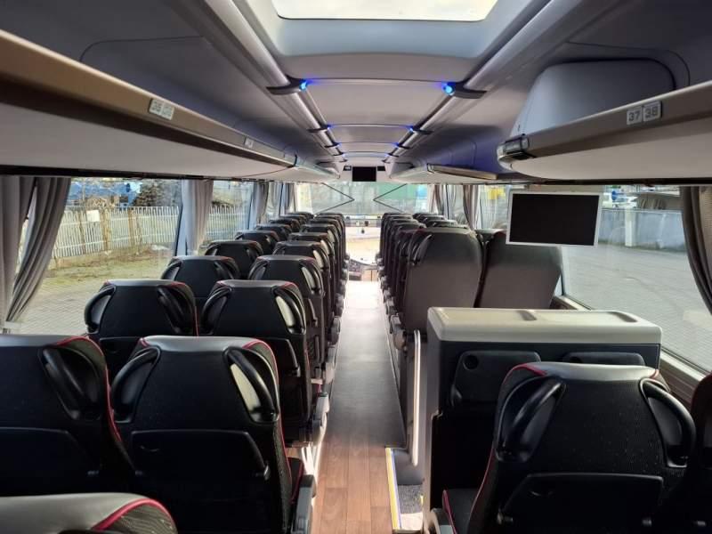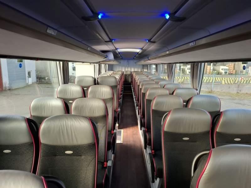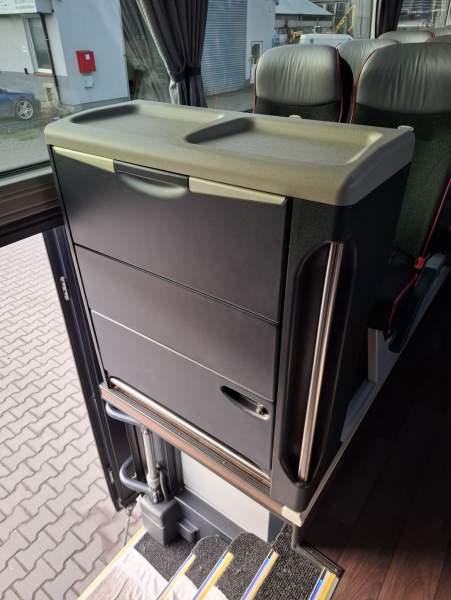 : WC, lodówka, caffebar, oświetlenie indywidualne, nawiewy dyszowe, siateczki, ABS, ASR, tempomat, retarder, nawigacja, CD, podnóżki, stoliczki, mikrofon, klimatyzacja, radio, sejf, regulacja wysokości nadwozia, centralny zamek, podwójne szyby boczne, wspomaganie kierownicy, elektryczne lusterka, fotele odchylane i rozsuwane, DVD, ogrzewanie stacjonarne, hak holowniczy, ESP