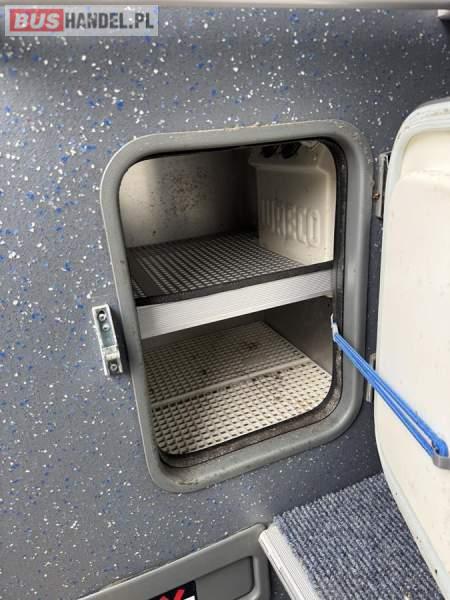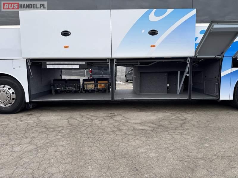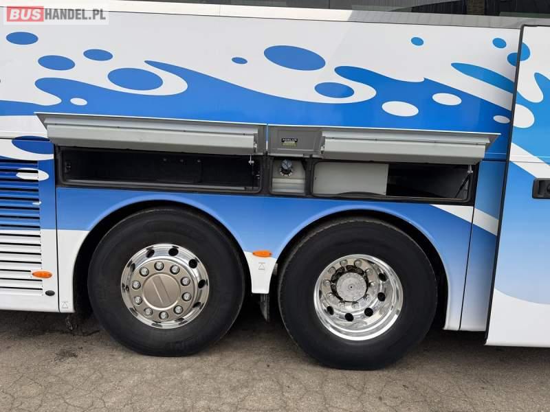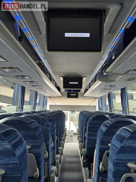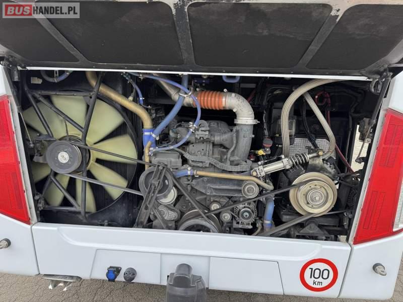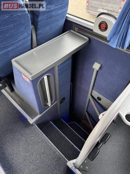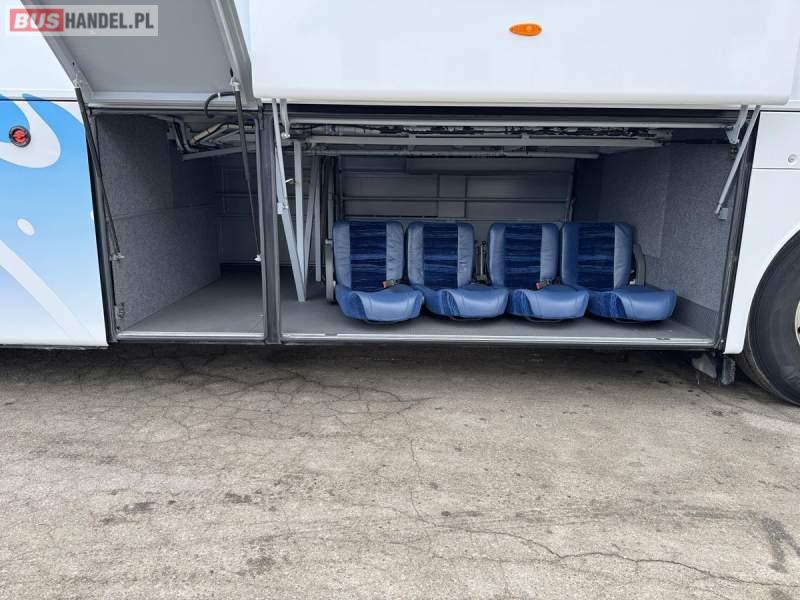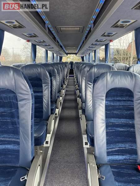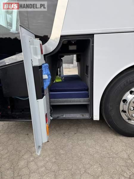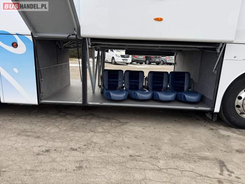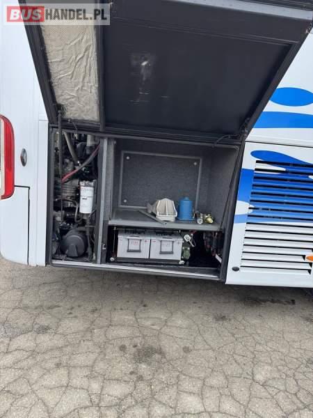 : klimatyzacja, WC, lodówka, caffebar, kabina sypialna, oświetlenie indywidualne, nawiewy dyszowe, podnóżki, stoliczki, siateczki, ABS, ASR, tempomat, retarder, mikrofon, radio, fotele odchylane i rozsuwane, sejf, regulacja wysokości nadwozia, centralny zamek, podwójne szyby boczne, wspomaganie kierownicy, aluminiowe felgi, elektryczne lusterka, ogrzewanie stacjonarne, DVD, ESP