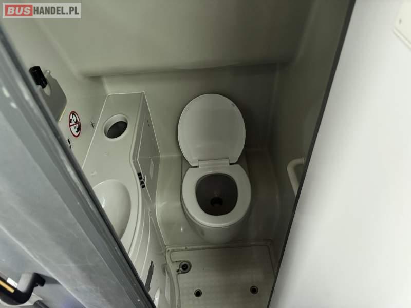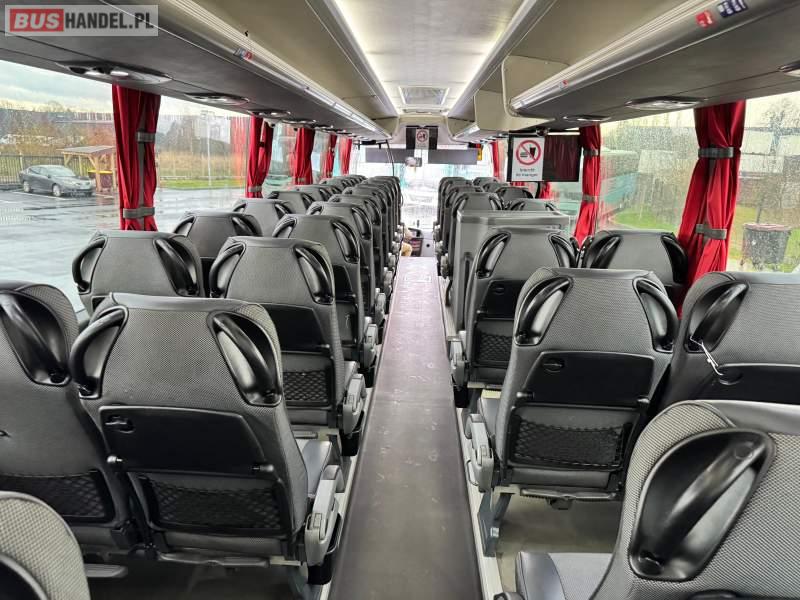 : video, WC, lodówka, oświetlenie indywidualne, nawiewy dyszowe, ABS, ASR, tempomat, retarder, CD, klimatyzacja, radio, rampa dla inwalidów, regulacja wysokości nadwozia, centralny zamek, podwójne szyby boczne, wspomaganie kierownicy, elektryczne lusterka, fotele odchylane i rozsuwane, DVD, ogrzewanie stacjonarne, ESP