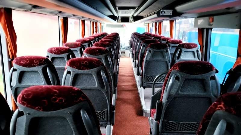: klimatyzacja, video, lodówka, oświetlenie indywidualne, fotele odchylane, podnóżki, siateczki, ABS, ASR, tempomat, retarder, CD, mikrofon, radio, regulacja wysokości nadwozia, centralny zamek, podwójne szyby boczne, wspomaganie kierownicy, elektryczne lusterka
