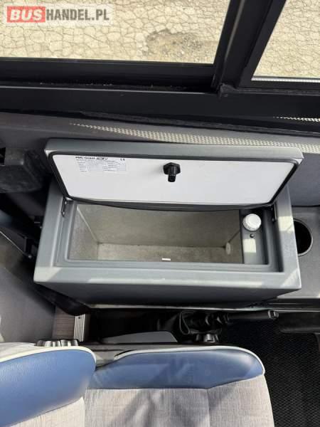 : lodówka, caffebar, fotele odchylane, oświetlenie indywidualne, nawiewy dyszowe, siateczki, ABS, ASR, tempomat, retarder, CD, podnóżki, stoliczki, mikrofon, klimatyzacja, radio, centralny zamek, podwójne szyby boczne, wspomaganie kierownicy, elektryczne lusterka, ogrzewanie stacjonarne, ESP