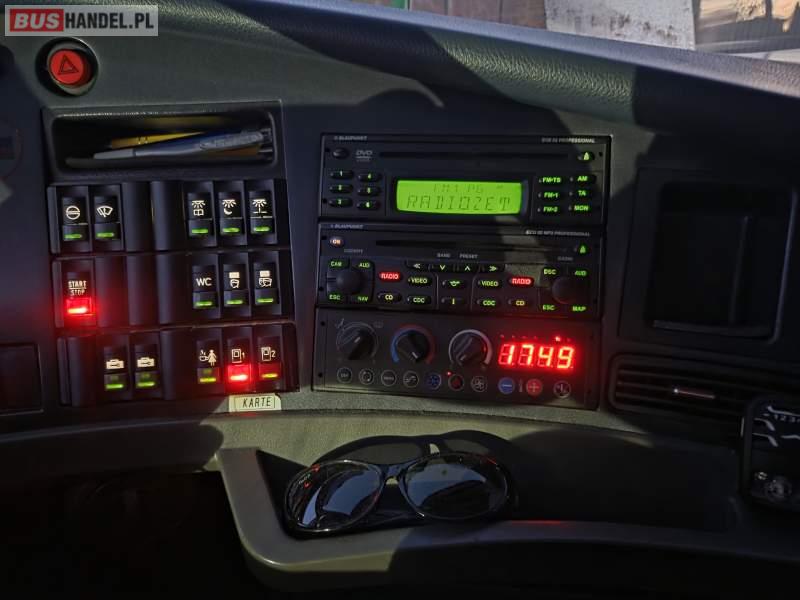 : klimatyzacja, video, WC, lodówka, caffebar, kabina sypialna, oświetlenie indywidualne, nawiewy dyszowe, podnóżki, stoliczki, siateczki, ABS, ASR, tempomat, retarder, CD, mikrofon, radio, fotele odchylane i rozsuwane, regulacja wysokości nadwozia, centralny zamek, podwójne szyby boczne, wspomaganie kierownicy, elektryczne lusterka, ogrzewanie stacjonarne, DVD, hak holowniczy, ESP