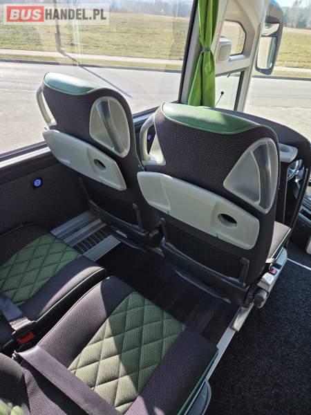 : WC, lodówka, caffebar, oświetlenie indywidualne, nawiewy dyszowe, siateczki, ABS, ASR, tempomat, retarder, nawigacja, CD, podnóżki, stoliczki, mikrofon, klimatyzacja, radio, sejf, regulacja wysokości nadwozia, centralny zamek, podwójne szyby boczne, wspomaganie kierownicy, elektryczne lusterka, fotele odchylane i rozsuwane, DVD, ogrzewanie stacjonarne, ESP
