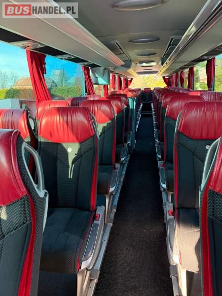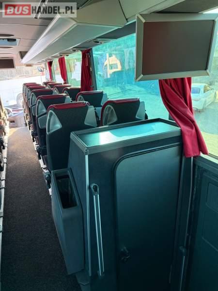 : WC, lodówka, caffebar, kabina sypialna, oświetlenie indywidualne, nawiewy dyszowe, siateczki, ABS, ASR, tempomat, retarder, podnóżki, stoliczki, mikrofon, klimatyzacja, radio, sejf, regulacja wysokości nadwozia, centralny zamek, podwójne szyby boczne, wspomaganie kierownicy, elektryczne lusterka, fotele odchylane i rozsuwane, DVD, ogrzewanie stacjonarne, ESP