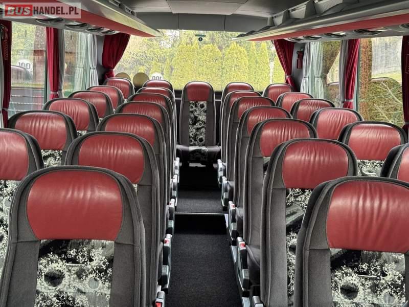 : WC, lodówka, caffebar, fotele odchylane, oświetlenie indywidualne, nawiewy dyszowe, siateczki, ABS, ASR, tempomat, retarder, CD, podnóżki, stoliczki, mikrofon, klimatyzacja, radio, kuchenka mikrofalowa, sejf, regulacja wysokości nadwozia, centralny zamek, podwójne szyby boczne, wspomaganie kierownicy, elektryczne lusterka, aluminiowe felgi, DVD, ogrzewanie stacjonarne, ESP