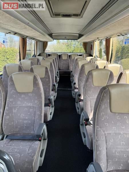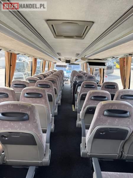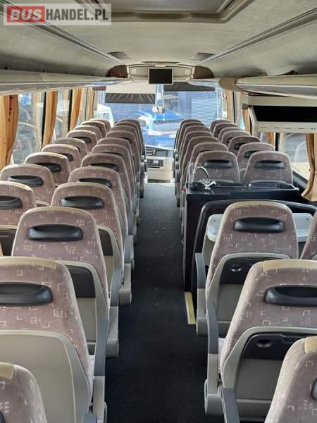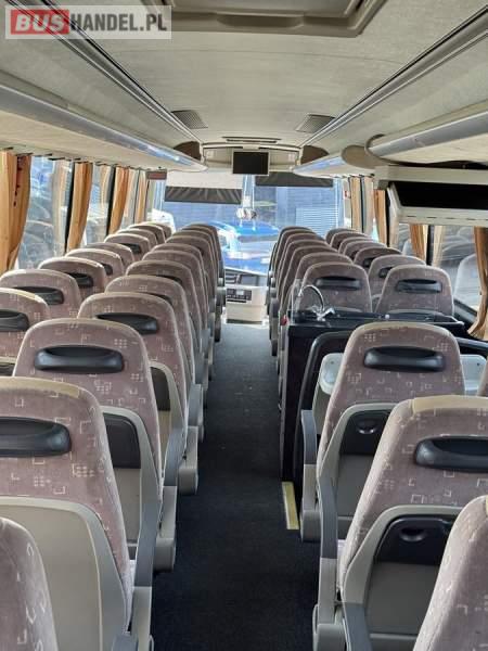 : WC, lodówka, kabina sypialna, fotele odchylane, oświetlenie indywidualne, nawiewy dyszowe, siateczki, ABS, ASR, tempomat, retarder, CD, podnóżki, stoliczki, mikrofon, klimatyzacja, radio, regulacja wysokości nadwozia, centralny zamek, podwójne szyby boczne, wspomaganie kierownicy, elektryczne lusterka, DVD, ogrzewanie stacjonarne, ESP