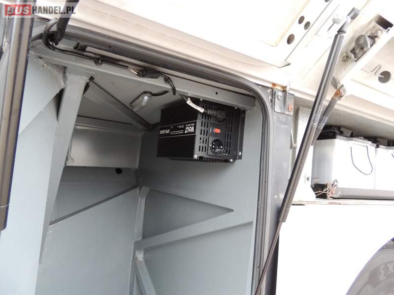 : video, WC, lodówka, oświetlenie indywidualne, nawiewy dyszowe, siateczki, ABS, ASR, tempomat, retarder, CD, podnóżki, stoliczki, mikrofon, klimatyzacja, radio, regulacja wysokości nadwozia, centralny zamek, podwójne szyby boczne, wspomaganie kierownicy, elektryczne lusterka, fotele odchylane i rozsuwane, DVD, ogrzewanie stacjonarne, ESP