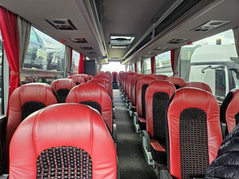 : video, WC, lodówka, caffebar, kabina sypialna, fotele odchylane, oświetlenie indywidualne, nawiewy dyszowe, siateczki, ABS, ASR, tempomat, retarder, CD, podnóżki, stoliczki, mikrofon, klimatyzacja, radio, rampa dla inwalidów, regulacja wysokości nadwozia, centralny zamek, podwójne szyby boczne, wspomaganie kierownicy, elektryczne lusterka, aluminiowe felgi, DVD, ogrzewanie stacjonarne, hak holowniczy, ESP