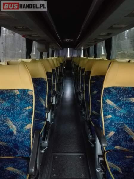 : video, WC, lodówka, caffebar, kabina sypialna, fotele odchylane, nawiewy dyszowe, siateczki, ABS, tempomat, retarder, podnóżki, mikrofon, klimatyzacja, radio, regulacja wysokości nadwozia, wspomaganie kierownicy, elektryczne lusterka, ogrzewanie stacjonarne